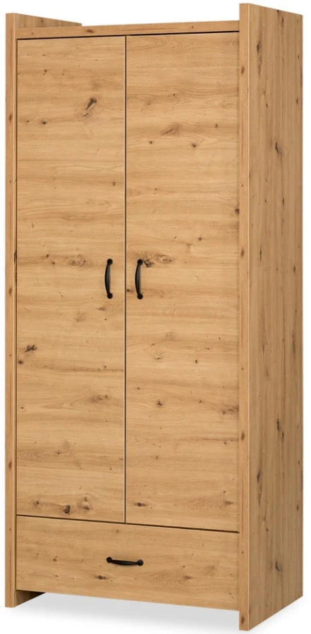 Deze prachtige 2-deurs garderobekast Sander geeft iedere babykamer een stoere look! De kast heeft meer dan genoeg opbergruimte. Deze kast heeft 2 deuren met een roede en 3 legplanken. Daarnaast heeft de kast onderin een grote lade waar je nog meer spullen voor je kleintje kwijt kan.Â