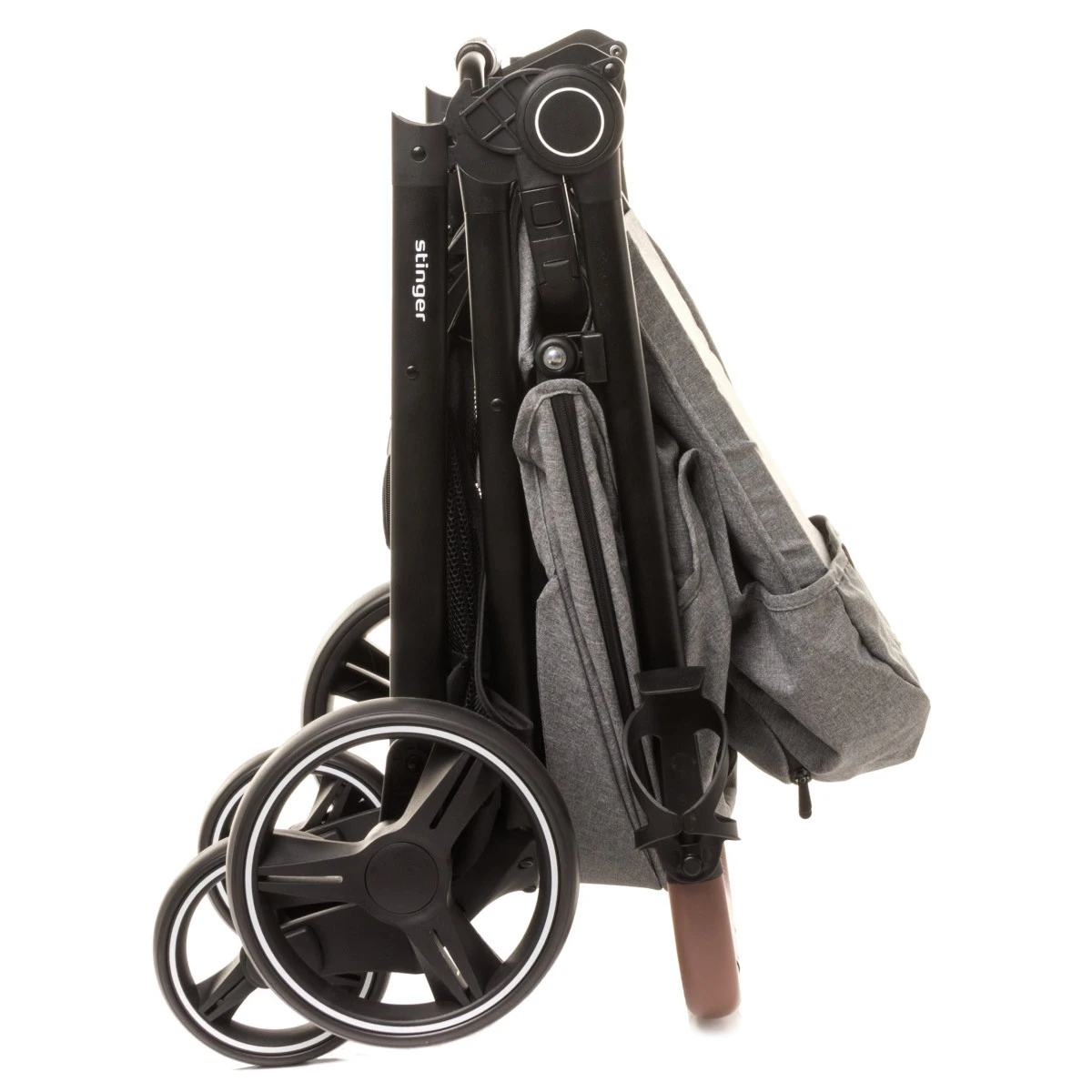 Ga comfortabel samen met je kindje op pad met de 4Baby Stinger XXIII wandelwagen! Deze mooie wandelwagen is te gebruiken vanaf ongeveer 6 maanden totdat je kindje max. 22 kg weegt. De wagen is gemaakt van hoogwaardig materiaal, heeft een aluminium frame en is afgewerkt met leatherlook details, wat de wagen een luxe uitstraling geeft.Â