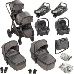 2 autostoeltjes, 2 bases, 2 reiswiegen – aanpasbaar tot wandelwageninzet, luiertas, 2 regenhoezen, adapters - Maximaal gewicht: