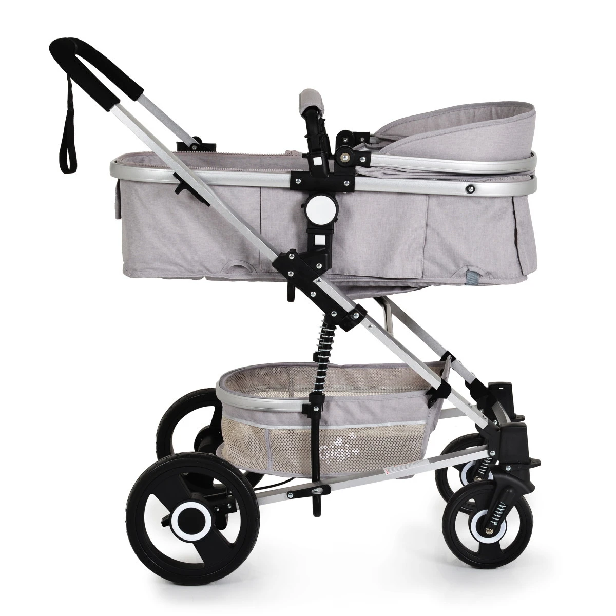De Cangaroo Gigi beschikt over allerlei functies die een wandeling met je kleintje tot een waar genot maken. Zo beschikt de kinderwagen over vering op alle wielen die de schokken op ruwer terrein flink verminderen. Dankzij de zwenkwielen aan de voorkant is de kinderwagen daarnaast heerlijk wendbaar. Daarnaast is de rugleuning van de Cangaroo Gigi verstelbaar, zodat je altijd wel een comfortabele positie voor je kleintje kunt vinden! Ook het meenemen van spulletjes is geen probleem dankzij de boodschappenmand onderin de kinderwagen. De meegeleverde bekerhouder zorgt ervoor dat je je flesje of kop koffie eenvoudig weg kan zetten.Â