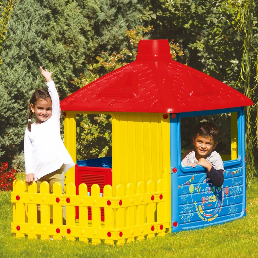Het huisje biedt veel mogelijkheden: je kindje treedt gemakkelijk naar buiten- en binnen door het rode werkende deurtje. Dankzij het meegeleverde tuinhekje voelt het zelfs alsof er een tuintje bij het huis zit. Zo voelt het net echt! Gaat het nou regenen? Dan houdt het grote dakje de kindjes droog en hebben ze een echte stoere schuilplaats!
