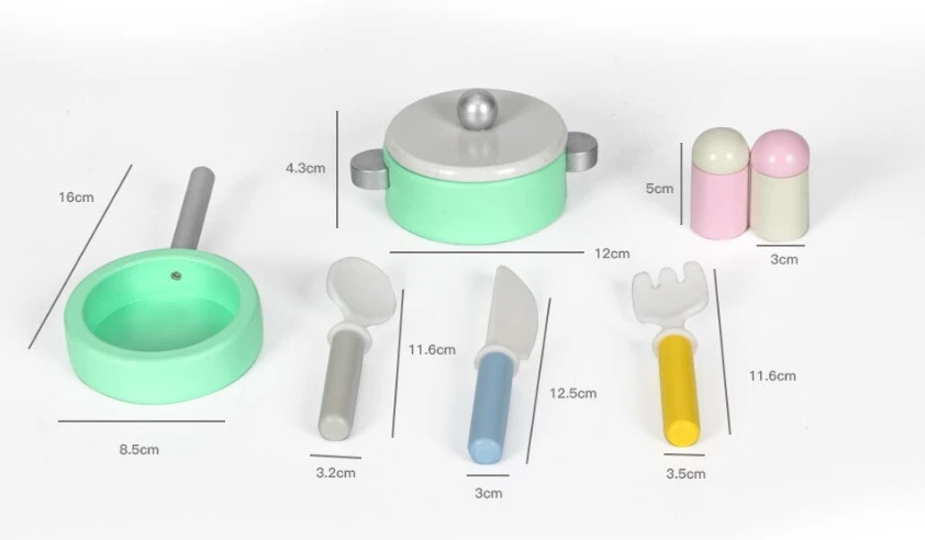 Het keukentje wordt geleverd met 7 accessoires, namelijk een steelpan, kookpan, peper- en zoutstel, lepel, vork en mes. Dus je kindje kan zich helemaal uitleven. De deurtjes kunnen geopend worden voor extra opbergruimte en aan de knopjes van het fornuis kan gedraaid worden. Het lijkt net echt!