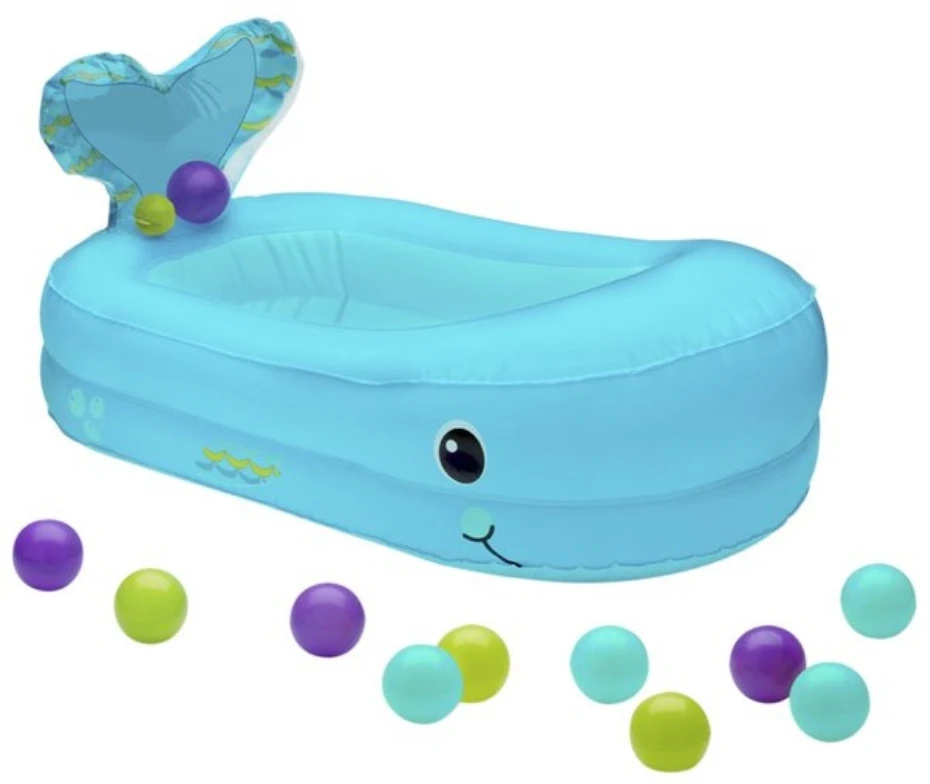 Heerlijk spetteren in dit opblaasbare Infantino badje in de vorm van een Walvis! Dit badje is perfect voor de overgang naar het grote bad. Zo kun je dit badje in het midden van je bad plaatsen!Â
