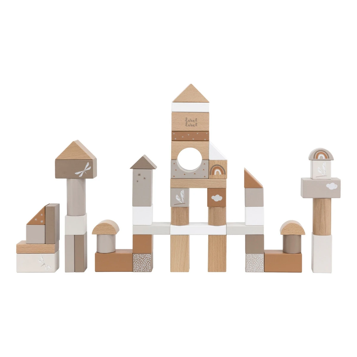 Wat een bouwplezier met deze blokkenset van Label Label! Je kindje raakt niet uitgespeeld, want de set bestaat uit maar liefst 50 stuks blokken! De toren kan meerdere manieren in elkaar gezet worden. De blokken hebben een mooie nougat kleur en zijn voorzien van verschillende figuurtjes.Â