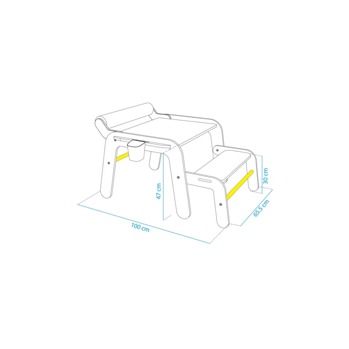 Vindt jouw kindje het ook zo leuk om de mooiste kunstwerken te tekenen? Of wil je samen met jouw kindje oefenen met schrijven of rekenen? Dan is dit tekentafeltje met bankje perfect geschikt voor je kindje. De tafel wordt geleverd met een rol tekenpapier die eenvoudig gemonteerd kan worden aan de achterkant van het tafeltje, hierdoor is het makkelijk voor jouw kindje om in een keer door te kunnen kleuren. Daarnaast zit er een pennenhouder bij, waardoor je kindje alles bij de hand heeft om de mooiste kunstwerken te maken.Â