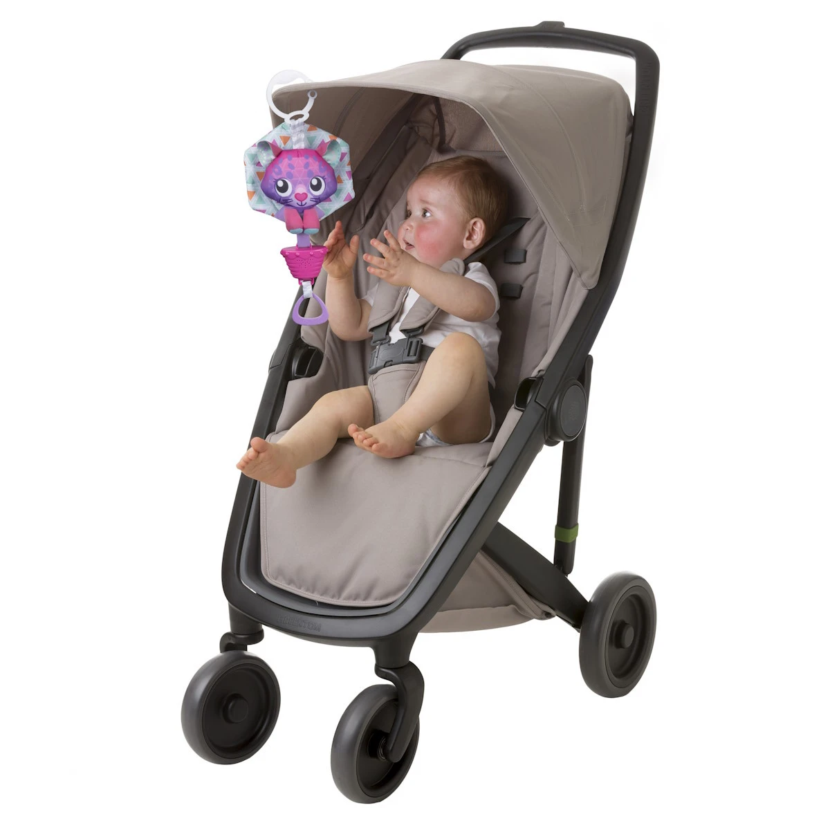 Of je nu een wandeling in de zomer of in de winter maakt, dit katje gaat mee! Door de handige C-clip is het knuffeltje makkelijk te bevestigen aan het ledikant, de box, de kinderwagen, de buggy of autostoel.Â