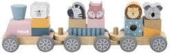 Tjoek tjoeeek! Je kleintje zal zich uren kunnen vermaken met deze mooie houten blokkentrein van PolarB! De trein bestaat uit een locomotief en 2 wagons, met allerlei losse onderdelen en blokken. Deze blokken kan je kleine op verschillende manieren opstapelen.