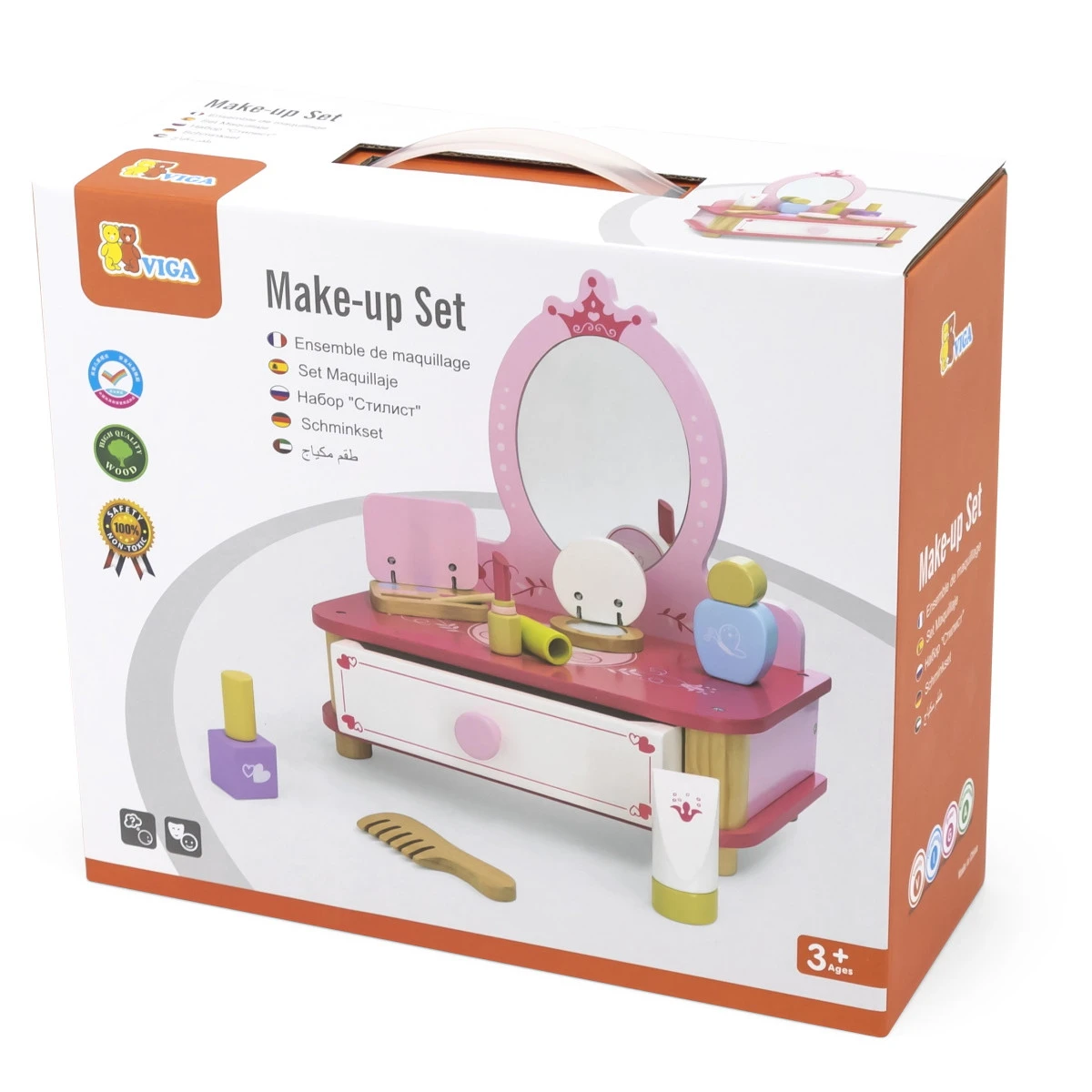 De Houten Make-up Set van Viga is onmisbaar in de kinder/speelkamer van kleine prinsesjes die houden van lekker optutten en opmaken! Deze leuke set is geschikt voor kindjes vanaf 3 jaar en is sierlijk afgewerkt.Â